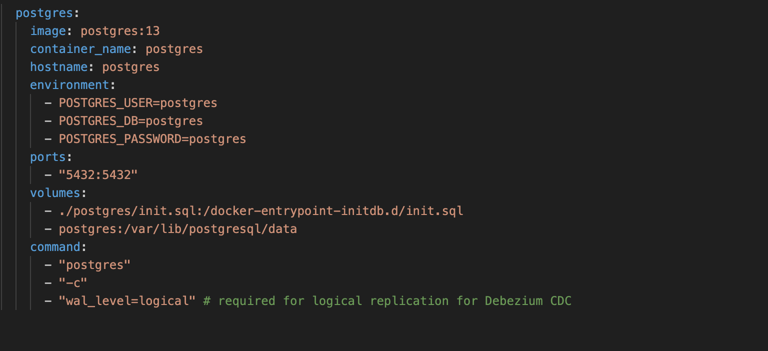 - Make sure to integrate Debezium with Postgres to enable the capture of CDC data from the Postgres database. Configure the Debezium Postgres connector accordingly.