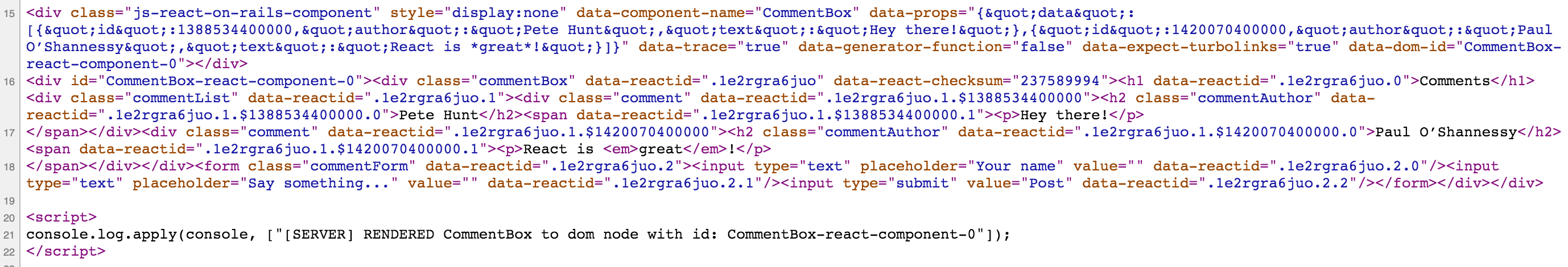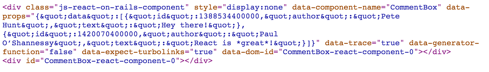 <%= react_component("CommentBox", { data: @comments }, prerender: true) %>