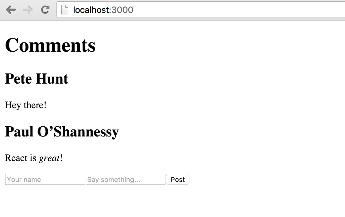 Facebook have a very good tutorial on how to use React.js to build a comment system which you can post comment to the server, live update the comment list and retrieve comments from server using Ajax.